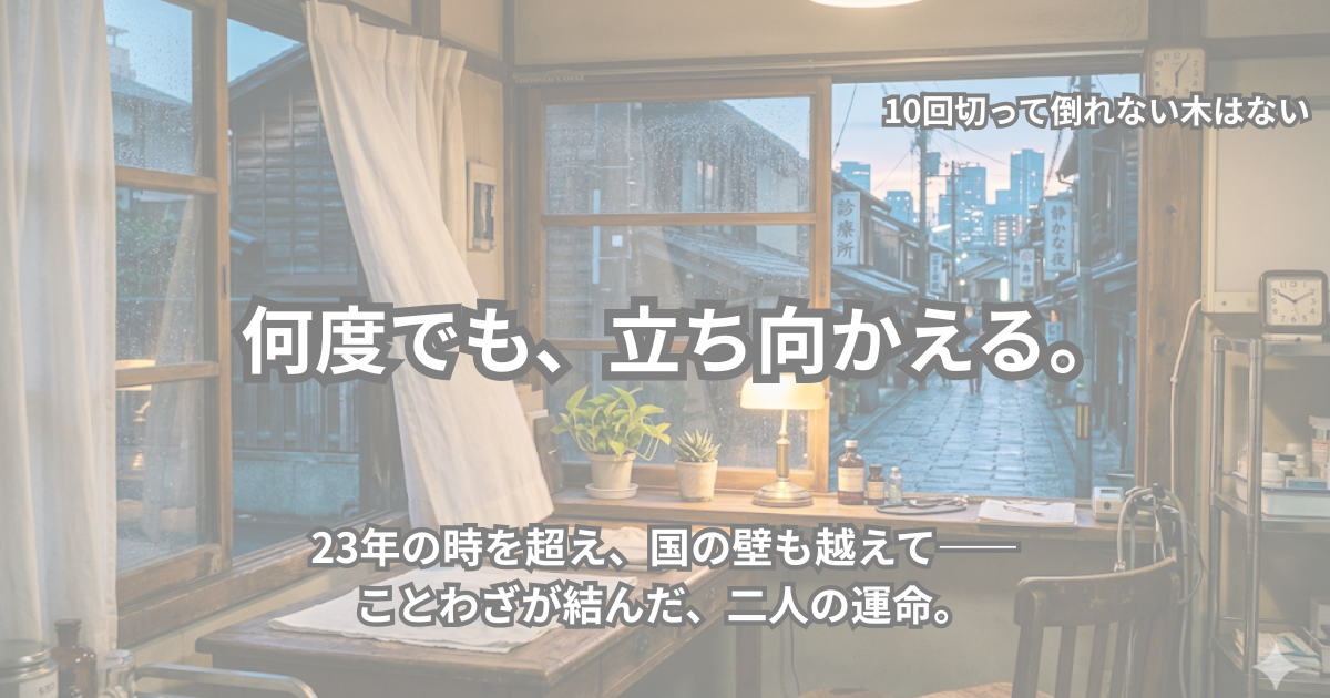 そして彼らを繋ぐ言葉があった——「10回切って倒れない木はない」