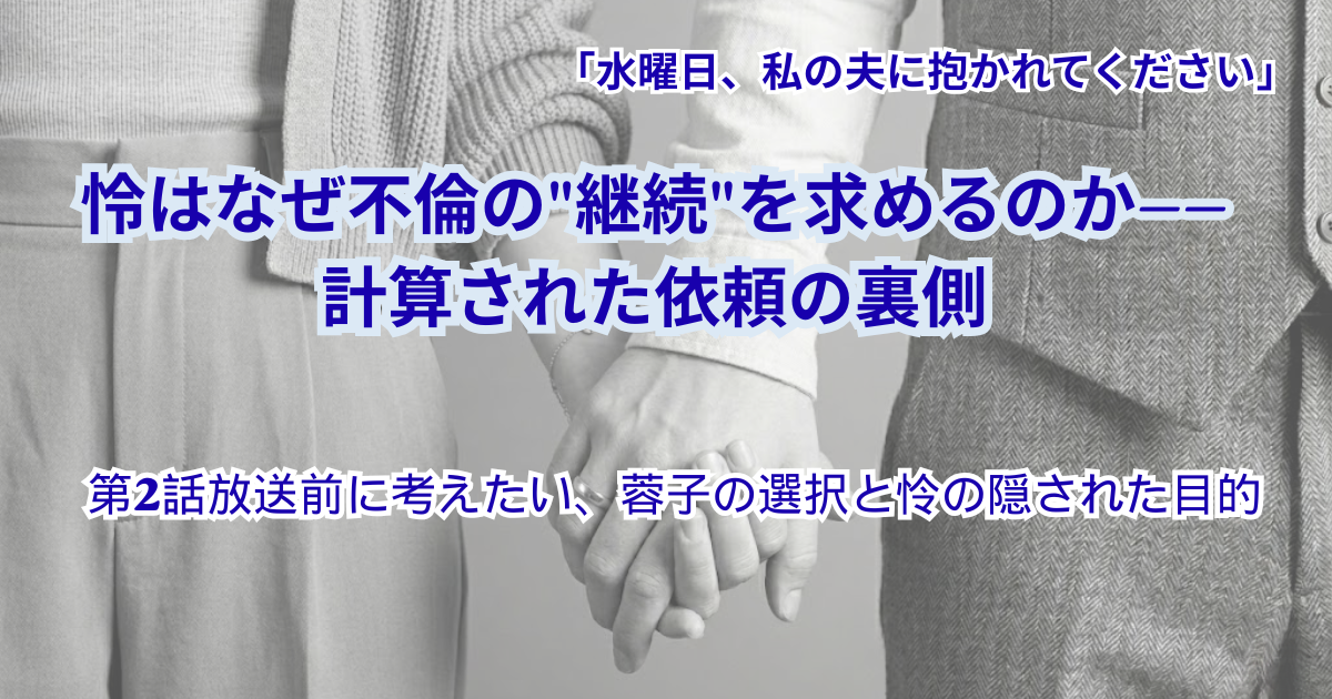 水曜日、私の夫に抱かれてください第2話放送前考察|怜の「公認不倫」依頼——蓉子はYESと言うのか
